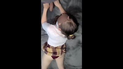 甜蜜的亚洲女大学生在女孩流口水的独奏场景中屈服于欲望