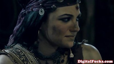 《古墓丽影》中的劳拉·克劳馥在屁股上被轮奸,被巨大的鸡巴割开,并获得肛门和阴户中出。