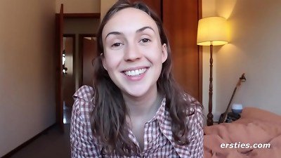 刚刚合法的年成熟可爱的小妞蒂芙尼在凸轮上暴露了巨大的水罐