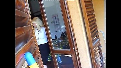 丰满年轻的年轻女儿很无聊,所以她抽搐隐藏的摄像头